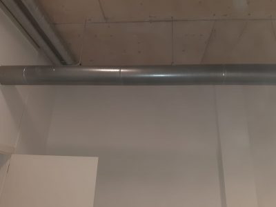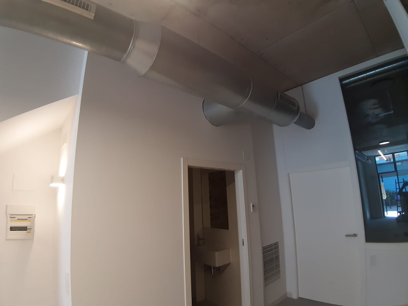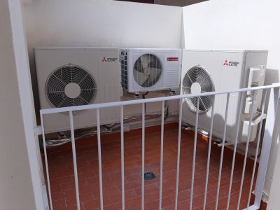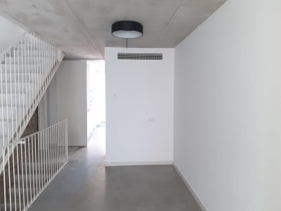 Instalación de conductos vistos y conductos ocultos en oficinas y piso de Benicàssim. Ventilaciones según C.T.E., máquinas de Mitsubishi, aerotermia ACS de Ariston maquina partida.